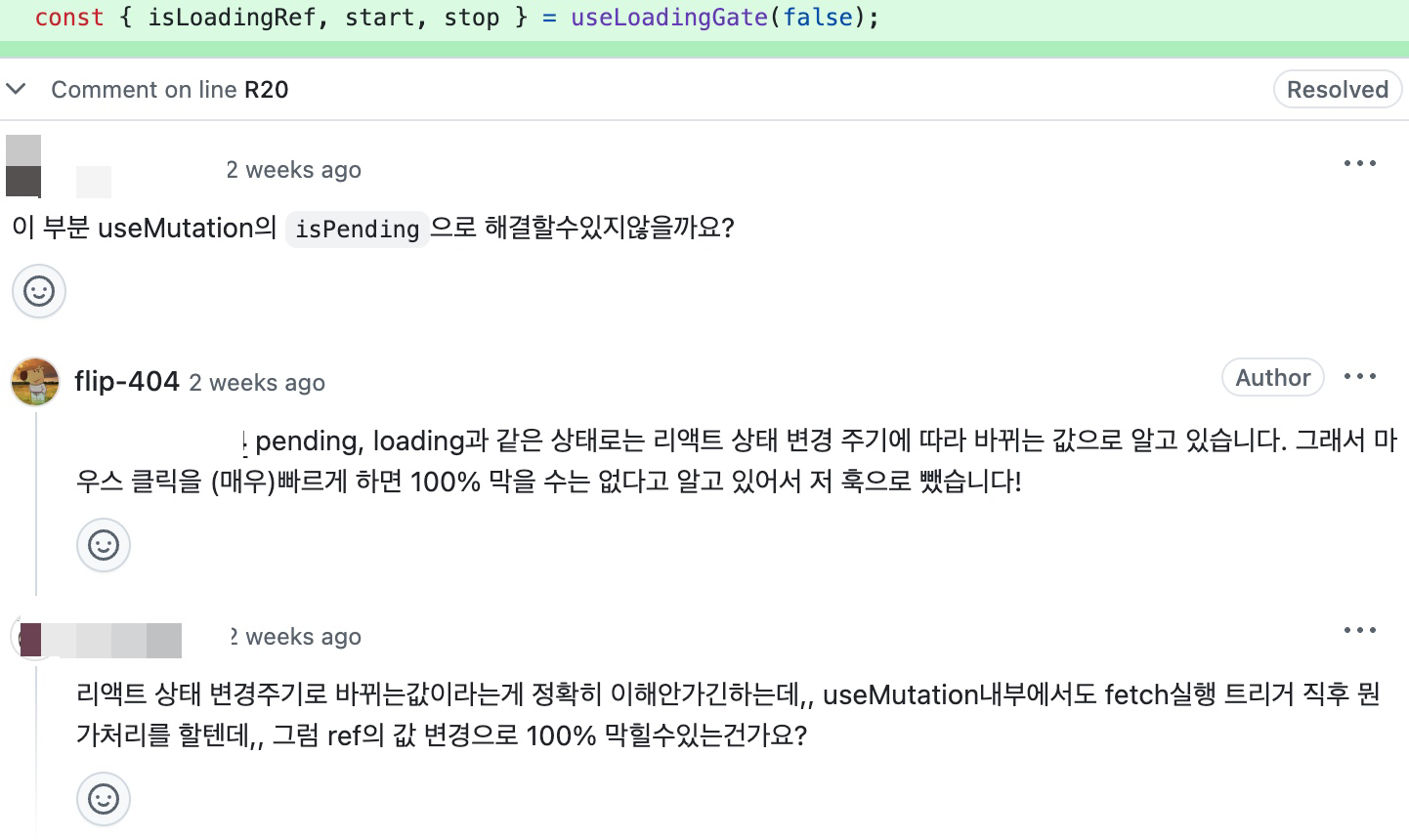useLoadingGate 훅을 도입한 PR에 남긴 코멘트, 그리고 이후에 팀원들과 나눴던 대화를 끝으로 마치겠습니다.